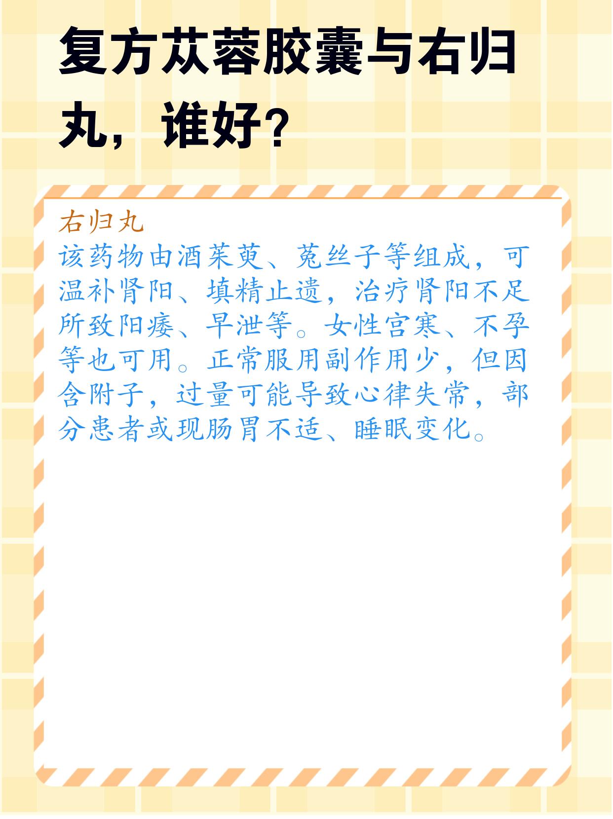 复方苁蓉胶囊与右归丸谁好?怎么选?