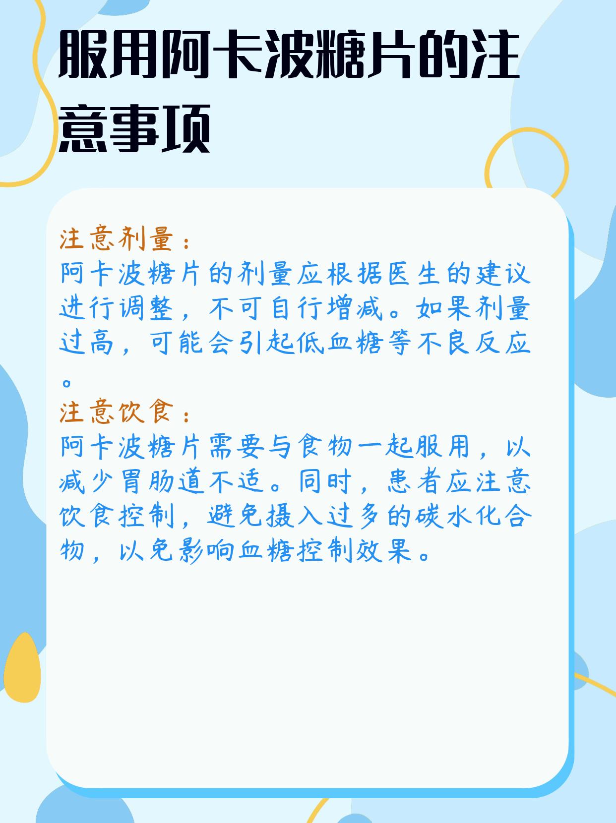 💖 如果你正在服用阿卡波糖片或者打算开始服用,一定要先咨询医生的意见,并严格按照医生的建议使用。同时,也要注意观察自己的身体反应,如有任何不适或疑问,一定要及时告诉医生。让我们一起科学用药,守护健康!💪