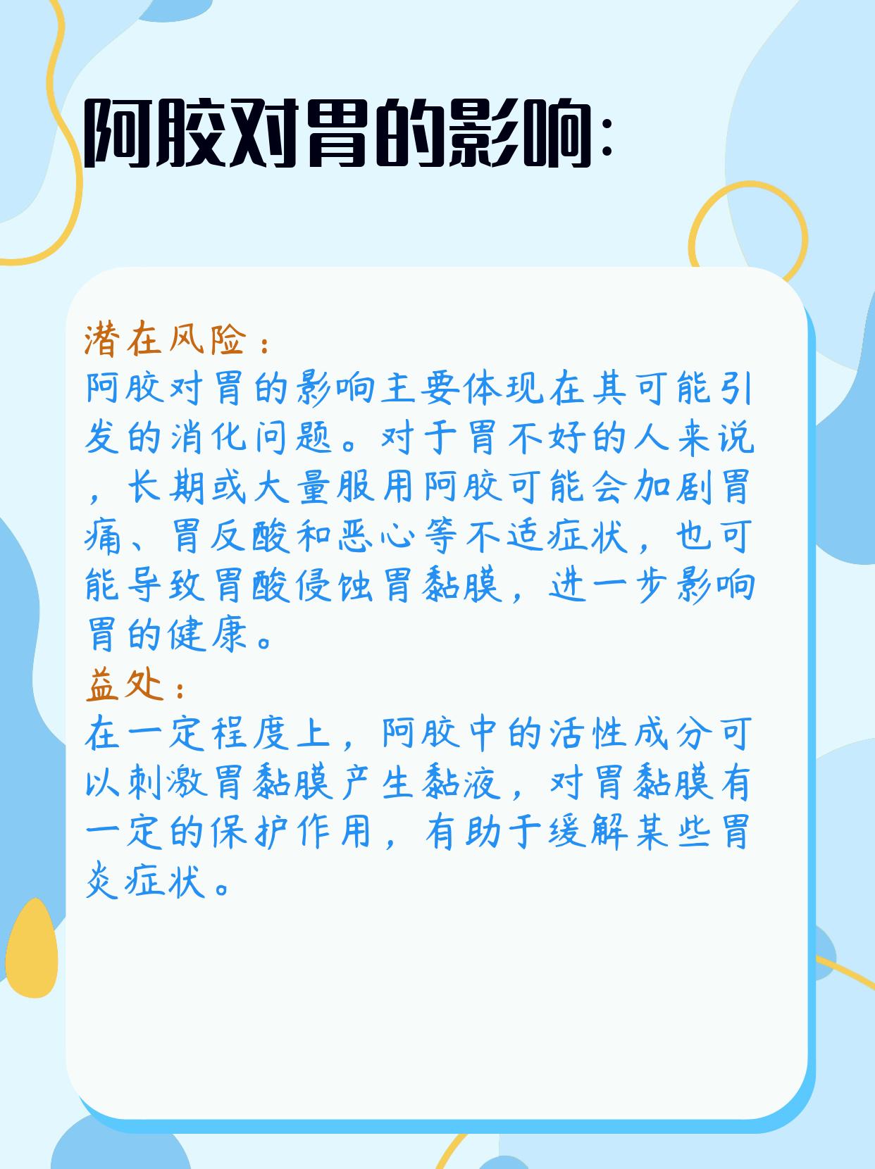 总之,阿胶对胃的影响是存在的,但只要我们掌握正确的服用方法📝,就可以避免或减轻这些影响🤝。同时,我们也要保持对身体的观察和感知,及时调整服用方案,让阿胶真正发挥出它的滋补功效💡。